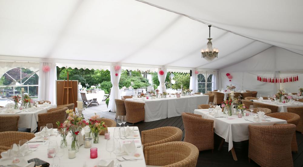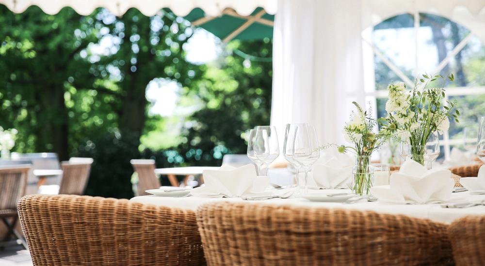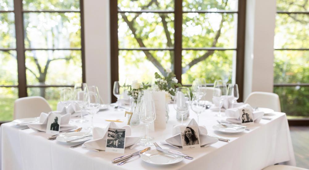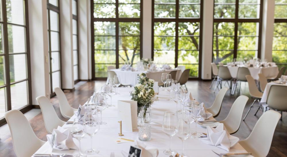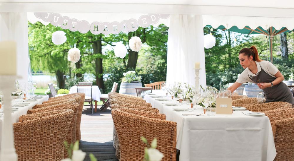 Am Tag der Tage kommen Sie einfach entspannt an … im Grünen, am Wasser, an weißen Tischen mit glänzendem Silber und funkelnden Gläsern, im Kreis Ihrer Lieben. Tanzen Sie in den Morgen und wachen Sie in unserer Hochzeitssuite wieder auf. Wir erwarten Sie schon beim Frühstück!